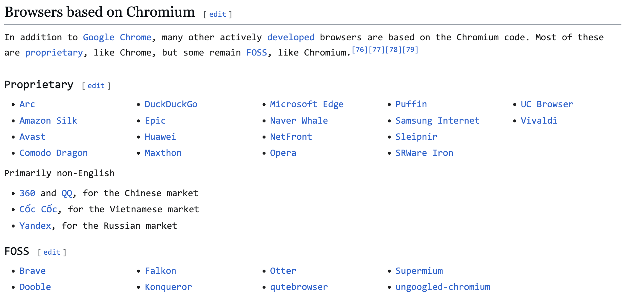 Browsers based on Chromium提到的就是一些相对比较知名的基于 Chromium 内核的浏览器。 - 🔗 wiki - chromium - Browsers based on Chromium
