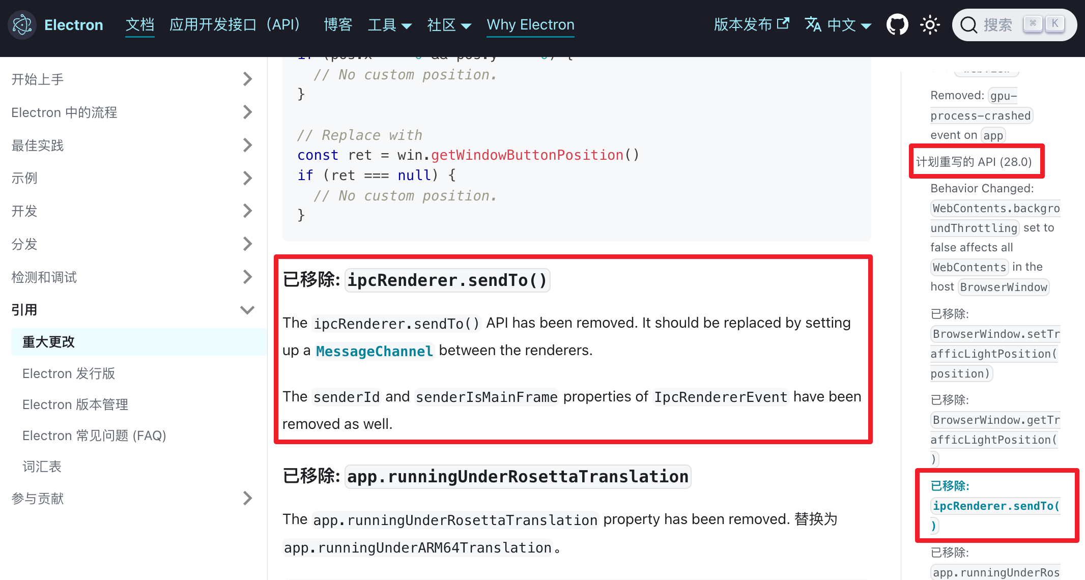 - https://www.electronjs.org/zh/docs/latest/breaking-changes#已移除-ipcrenderersendto