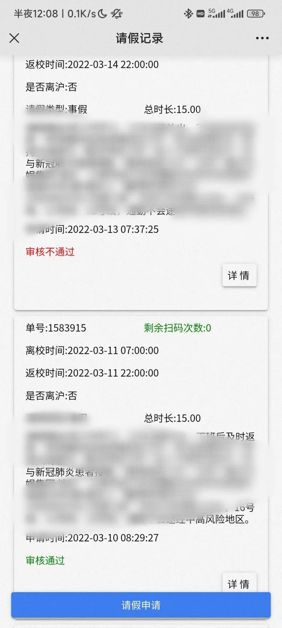 因疫情原因,学校🚫外出实习,就这样持续5个月的实习突然按下暂停键,每日提交的请假外出审批也出现了扎心的红色,尚不知何时恢复正常。