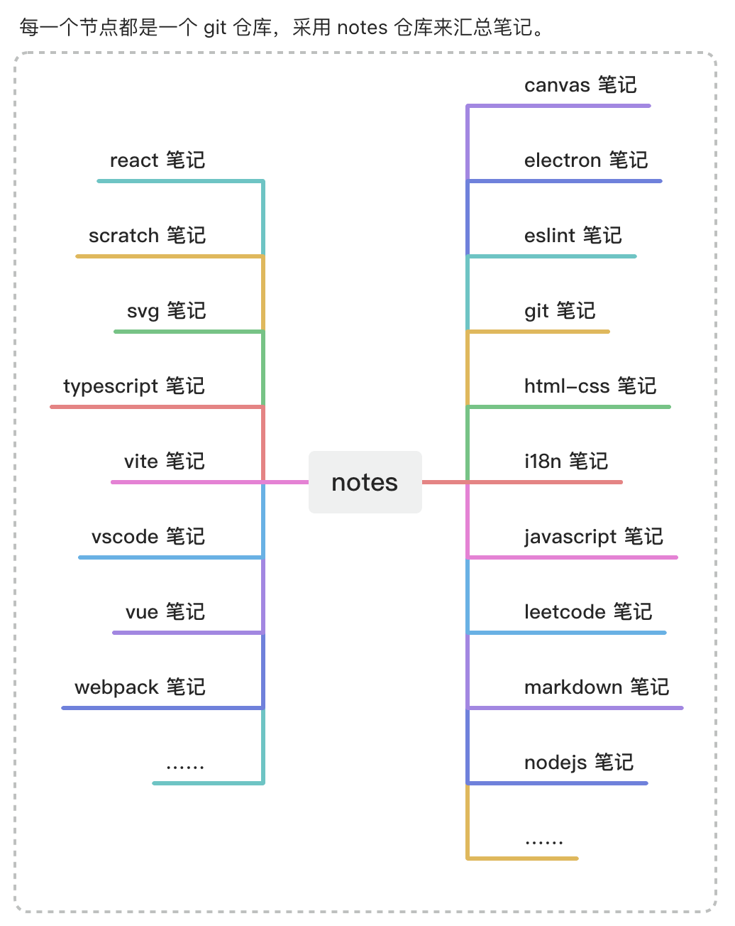 - 本质上就是一个简单的 git 仓库,在仓库的 notes 目录下,存放着一系列的笔记,这些笔记就是知识库中的核心内容。