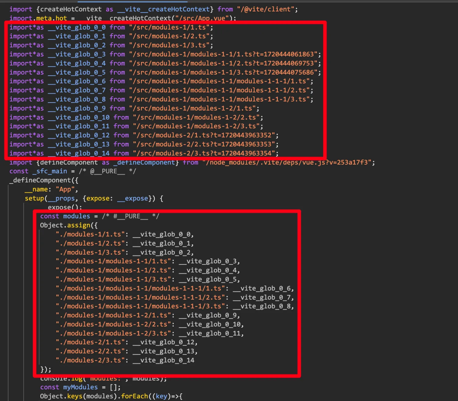 const modules = import.meta.glob('./modules/*.ts', { eager: true })