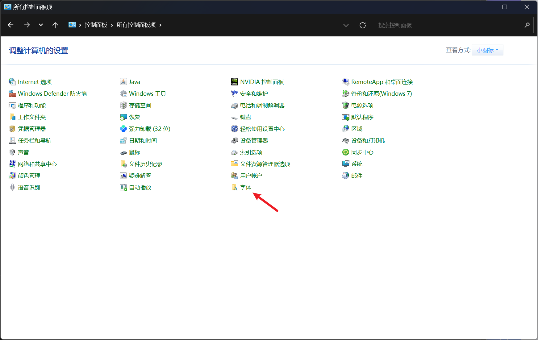 - 在字体文件夹中搜索