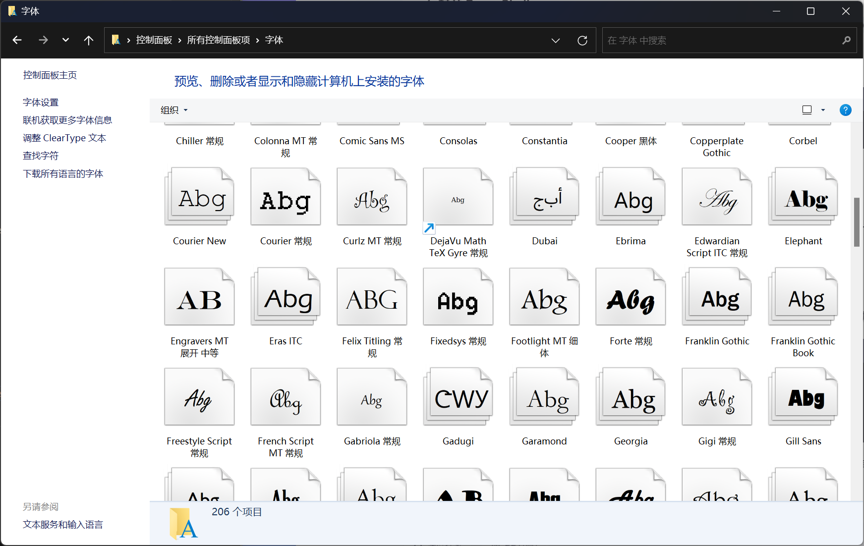 等),则说明该字体已安装。