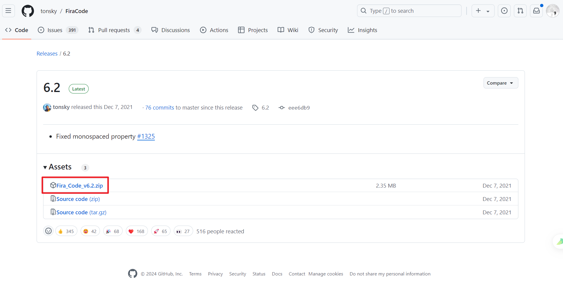 - https://github.com/tonsky/FiraCode/releases/tag/6.2